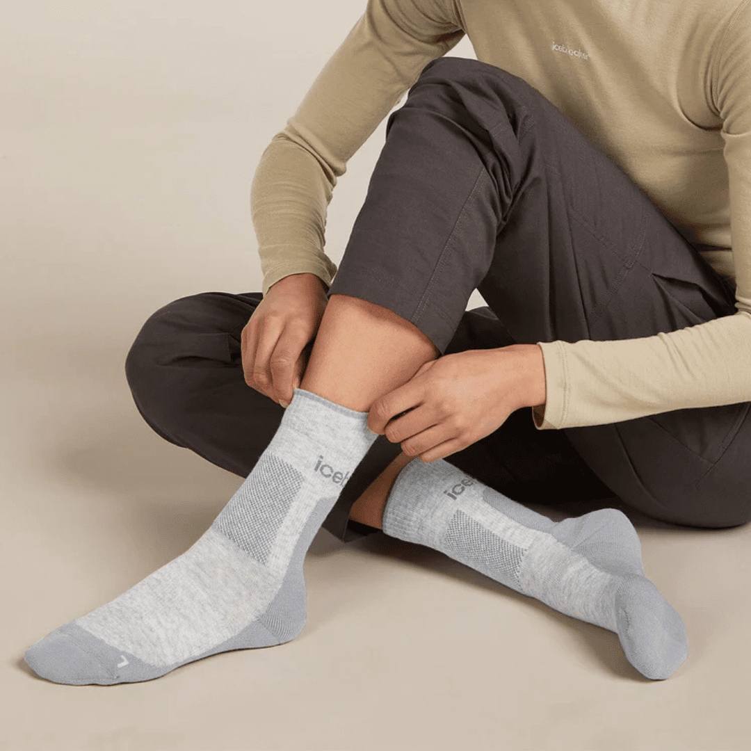 De Icebreaker Hike+ Medium Crew wandelsokken voor dames in het grijs bieden comfort, ondersteuning en betrouwbaarheid bij elk type wandeltocht. De gemiddelde demping zorgt voor balans tussen zachtheid en stabiliteit, waardoor ze ideaal zijn voor zowel dagtochten als bergwandelingen. De merinowol is van nature ademend, temperatuurregulerend en geurremmend, wat je voeten droog en fris houdt bij intensief gebruik.